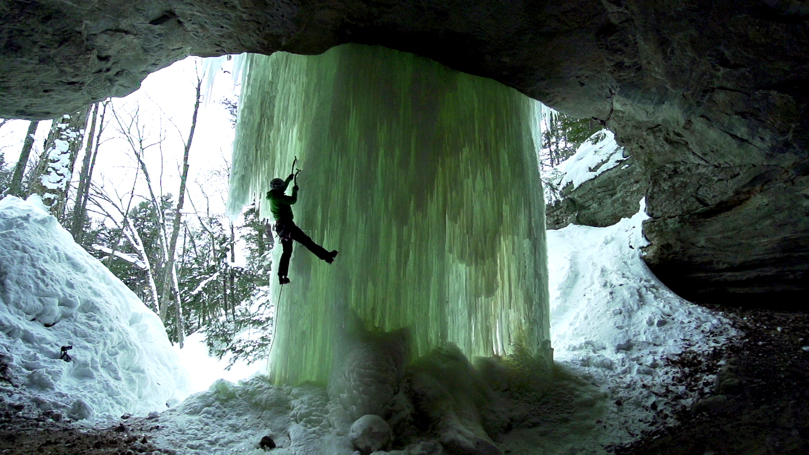 In the far north of America's heartland sandstone walls erupt from the icy waters of an inland sea to form one of the largest concentrations of climbable ice in North America.