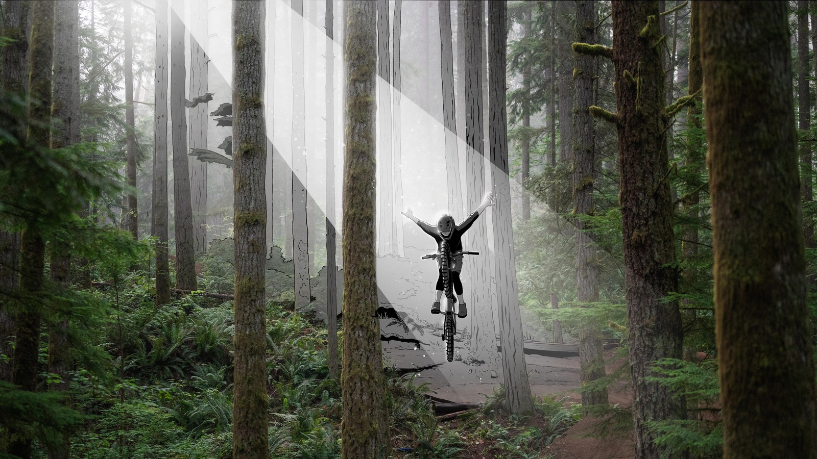 It is the last day of summer and Julia is at the local bike shop hoping that her bike can be fixed. While checking out the flashy displays of new bikes and shiny components, a comic book catches her eye. The comic explores a world which stylizes the sights and sounds she experiences on the trails. The comic captures her imagination and she soon finds herself on a ride like none other.