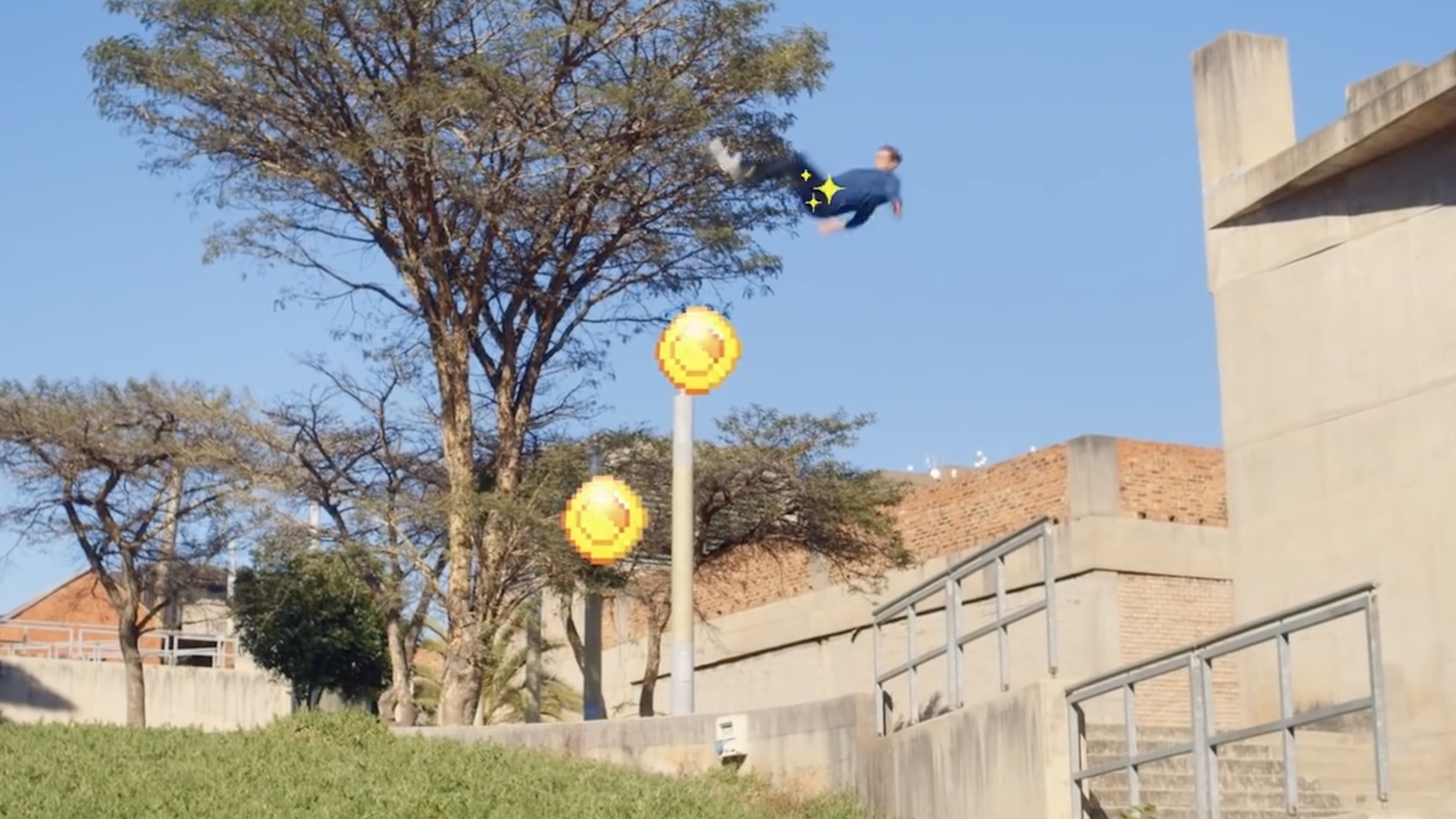 @Dom Tomato is back with another out of this world freerunning adventure across the golden city of Johannesburg. Putting his parkour skills to the test, he has to complete all four levels of the game and string together trick combinations and huge jumps.