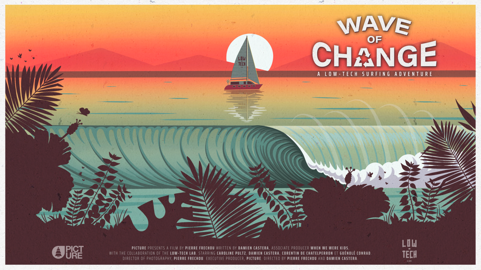WAVE OF CHANGE : A low-tech surfing adventure. Bahia de Huatulco, State de Oaxaca, Mexico. October 2020. Professional surfer Damien Castera joined Caroline, Corentin, and Guénolé on board the now well-known “Nomade des Mers,” a catamaran currently sailing around the world in search of low-tech innovation, and a pioneer in developing sustainable and affordable technologies.