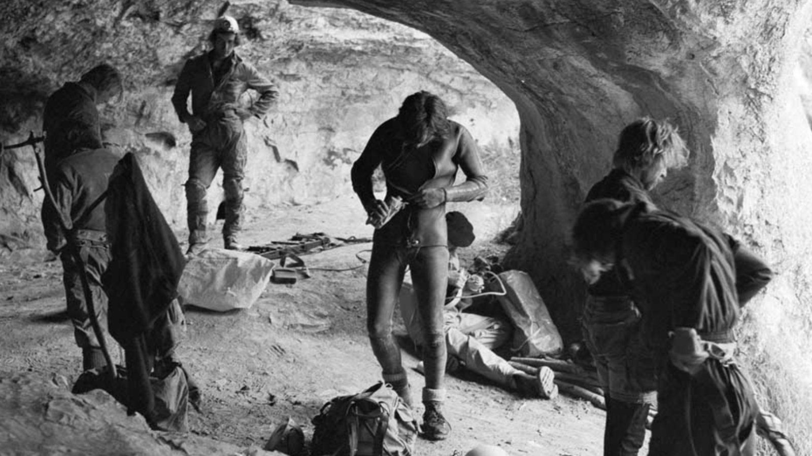 As part of the process, Matt and Anna delved deep into a cave near Winnat's Pass in the Peak District to capture the underground sounds which form the soundtrack of an audio-visual story designed to be seen and heard in the unique environment of Sheffield Cathedral's Crypt. The original article has been abridged, narrated and recorded by Anna, and audiences experienced it at ShAFF's Spirit of Adventure event at Sheffield Cathedral in September 2022, where it played using 'silent disco' headphones with images projected onto the walls of the Crypt. The images including a selection taken by the late Paul Deakin, that capture the camaraderie, culture and equipment of caving in the '70s in intimate detail