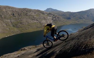 Danny Macaskill testing the limits of mountain biking, riding down the infamous Dubh Slabs on the Isle of Skye...